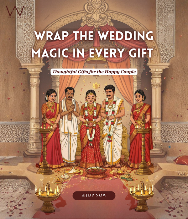 At Wrap Arts, we make gifting personal—crafted with bespoke art-led luxury gifting 🎁. From celebration, Return Gifts, engagement essentials, wedding essentialsAnniversary Gifts, Baby shower, Naming Ceremony, Birthday Gifts,Half sharee ceremony, Upanayanam, our collection turns every gesture into a memory.