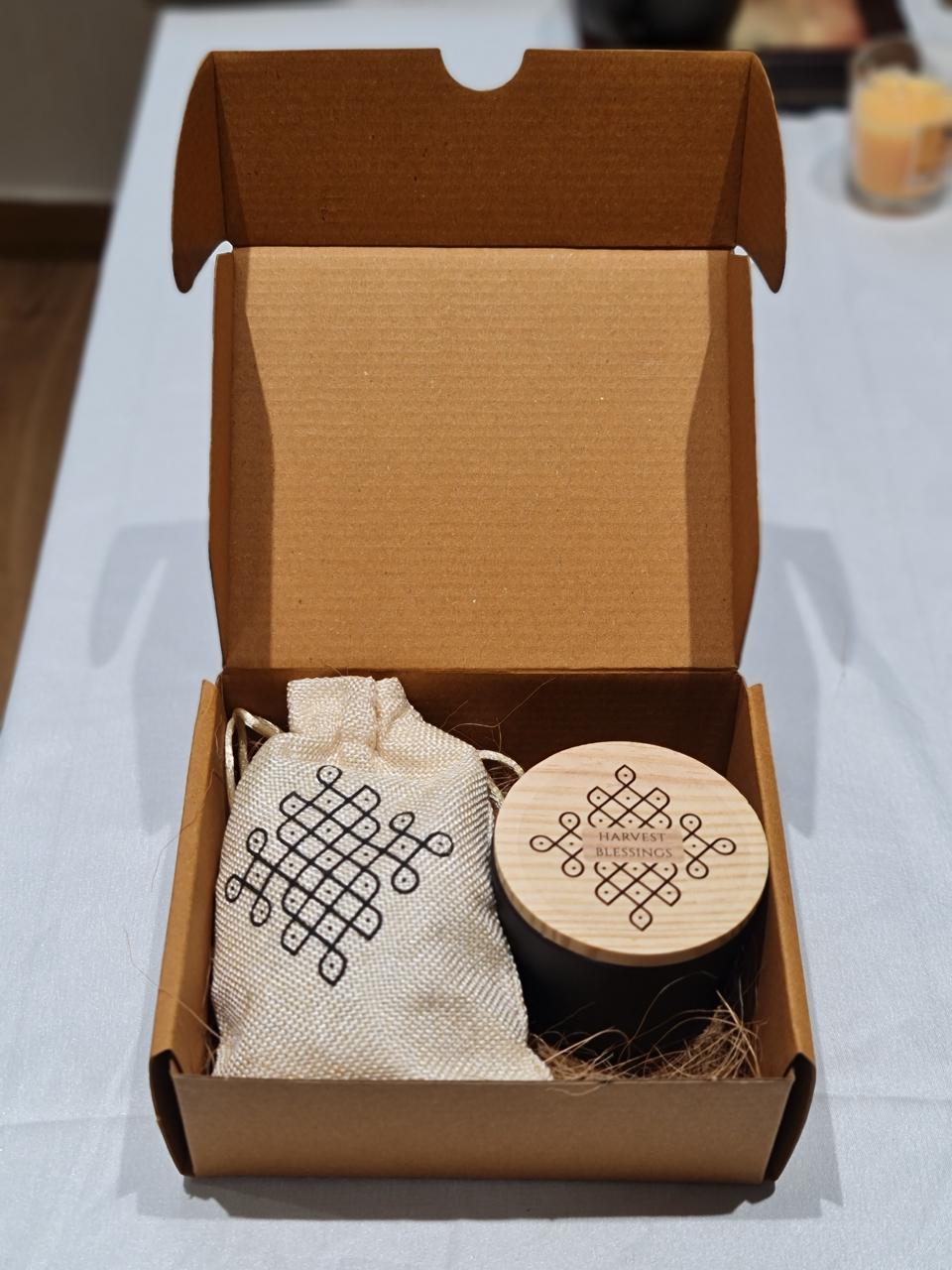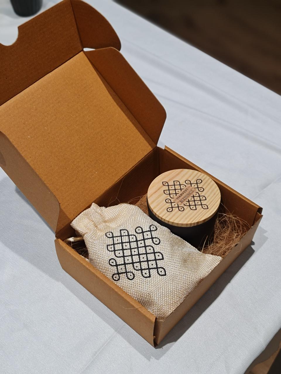 REUSABLE COMPONENTS – Decorative jar and potli bag extend value beyond the edible contents
