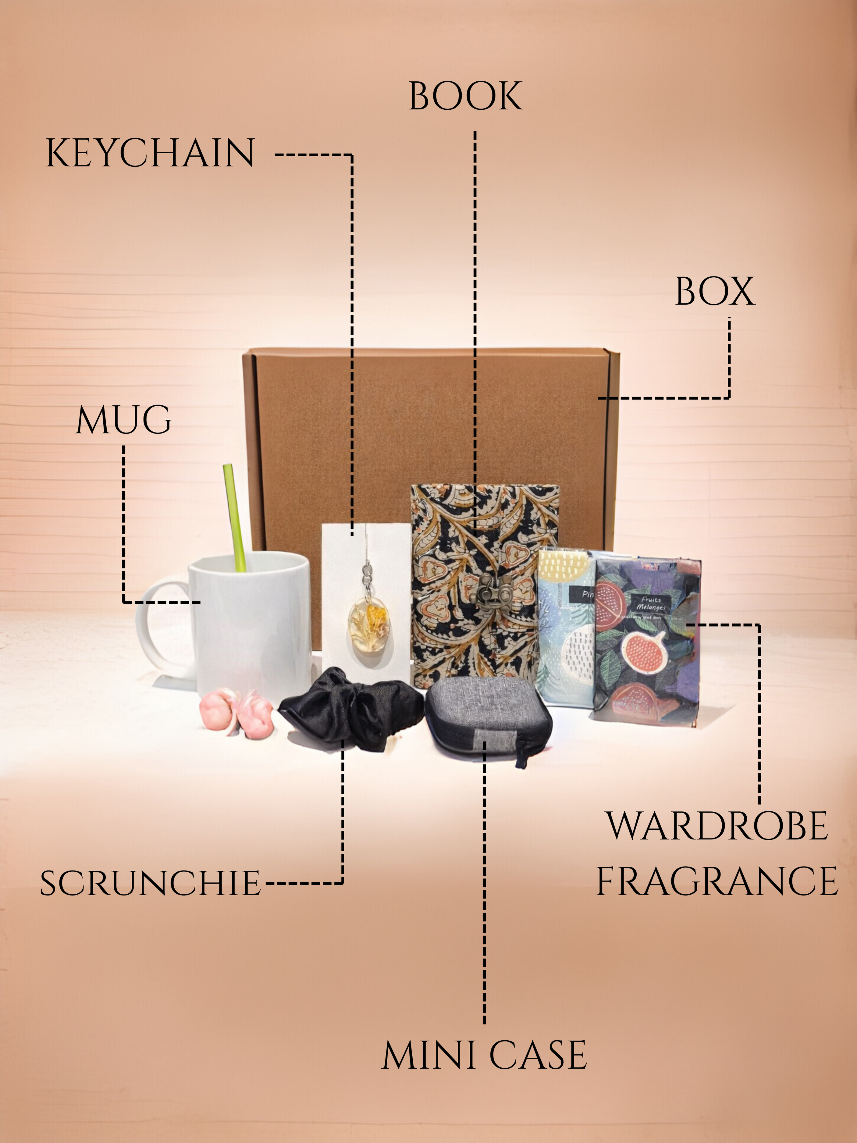 Practical & Stylish - Each item is both useful and beautiful. The white mug is classic, the grey pouch is versatile, the keychain adds elegance, the floral notebook inspires creativity, and scrunchies are gentle on hair.