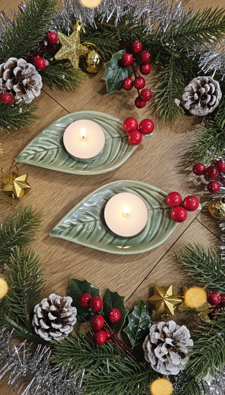 Festive Holly Leaf Tea Light Holder Set of 2