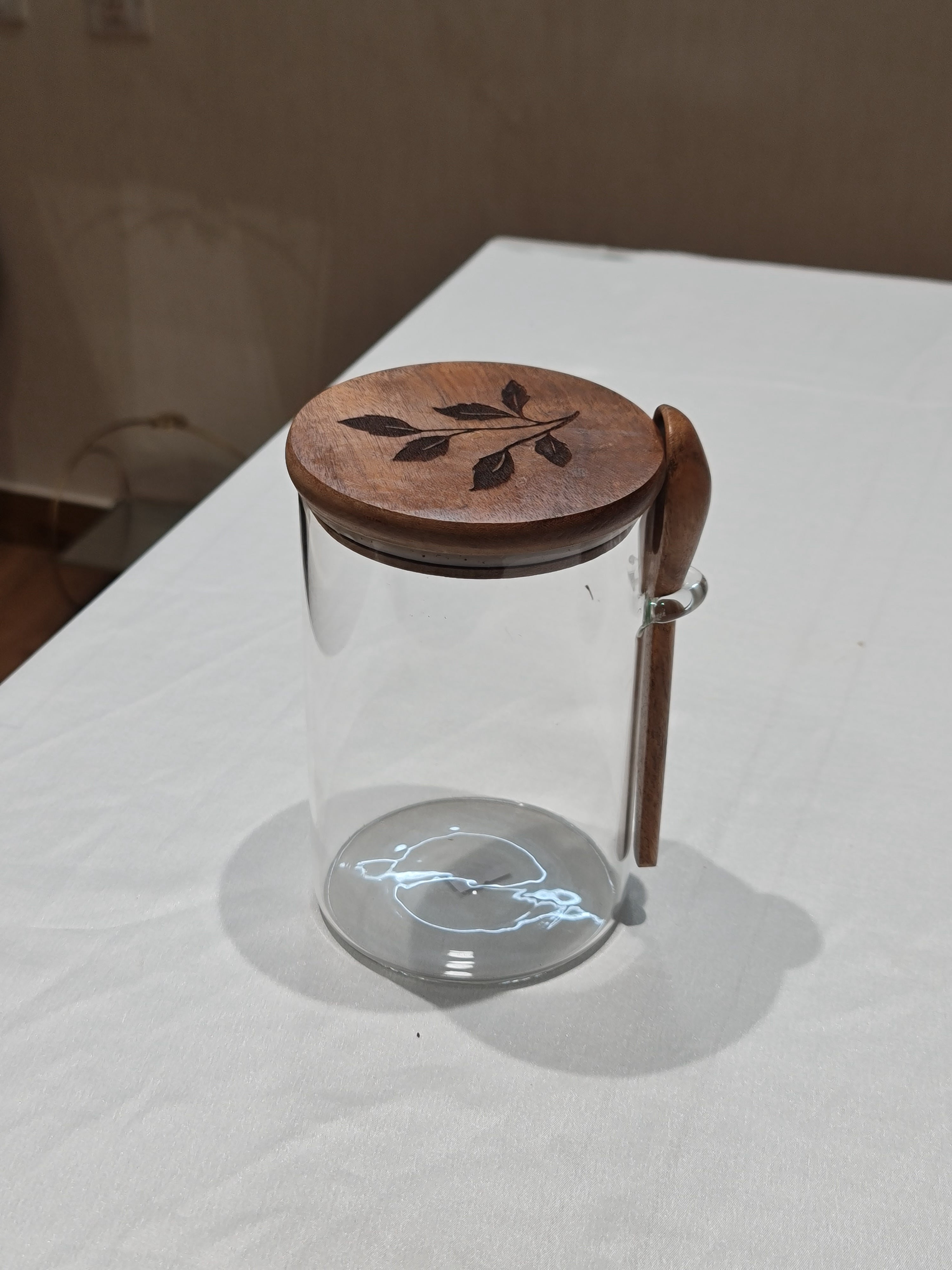 Glass Storage Jar with Wooden Lid & Spoon (1kg)