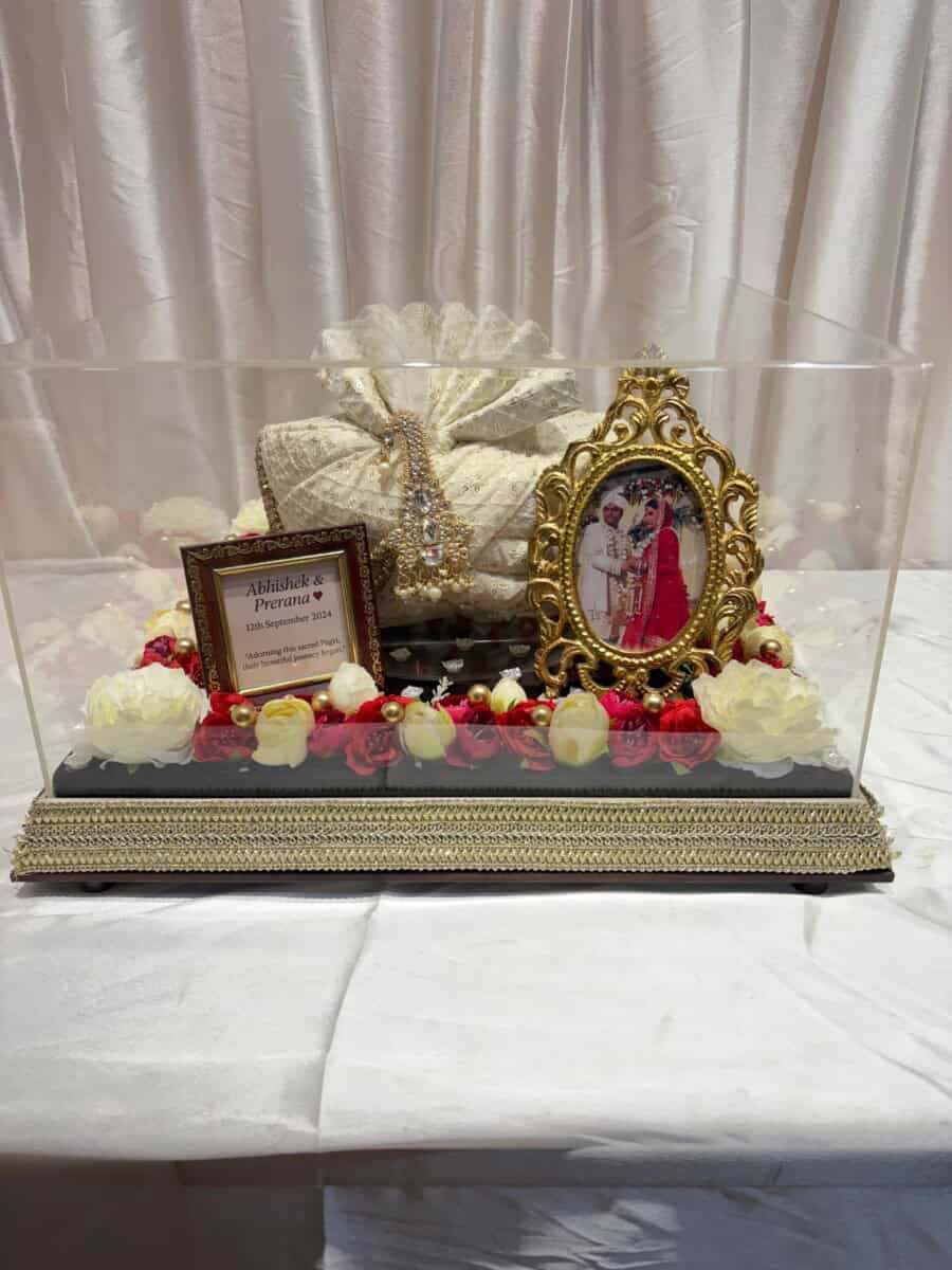 Perfect for showcasing groom essentials, trousseau, or gifts during wedding ceremonies. The display tray adds a polished, cohesive look to the celebrations.