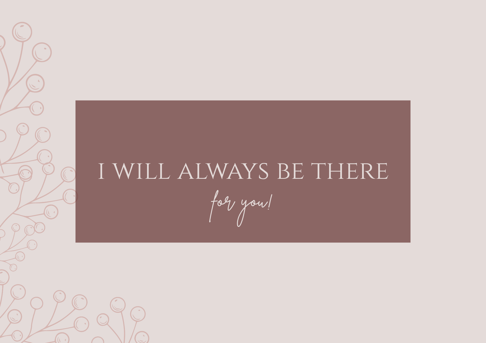 Express unwavering support with this beautifully designed "I Will Always Be There for You" greeting card. Featuring an elegant mauve-brown panel with delicate botanical accents in soft blush tones, this A5 card combines sophistication with heartfelt sentiment.