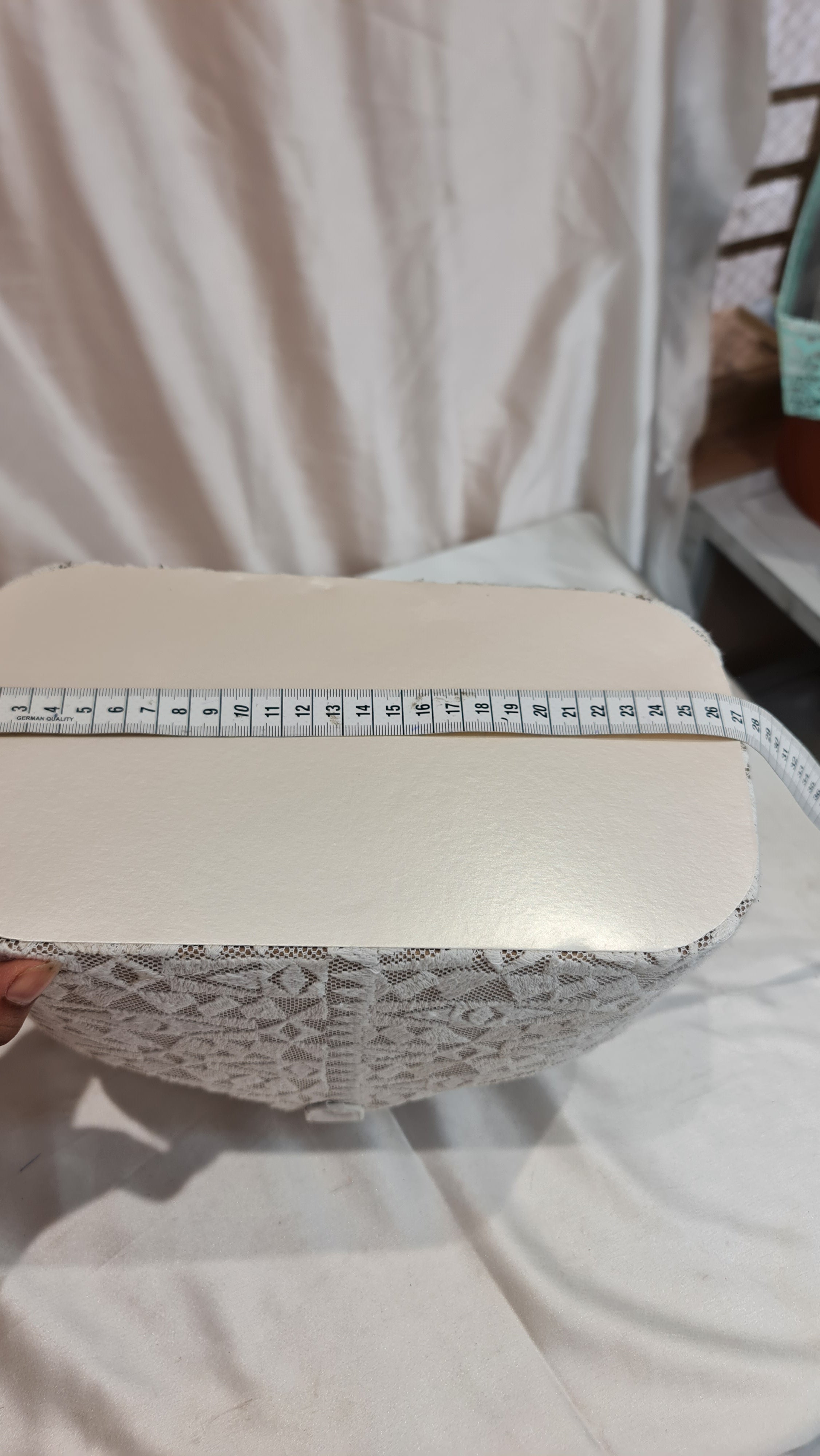 High-End Design & Construction: Features a structured, durable body enveloped in a beautiful white geometric embroidered lace overlay on a neutral base, offering a unique, textured, and luxurious appearance suitable for top-tier gifting.