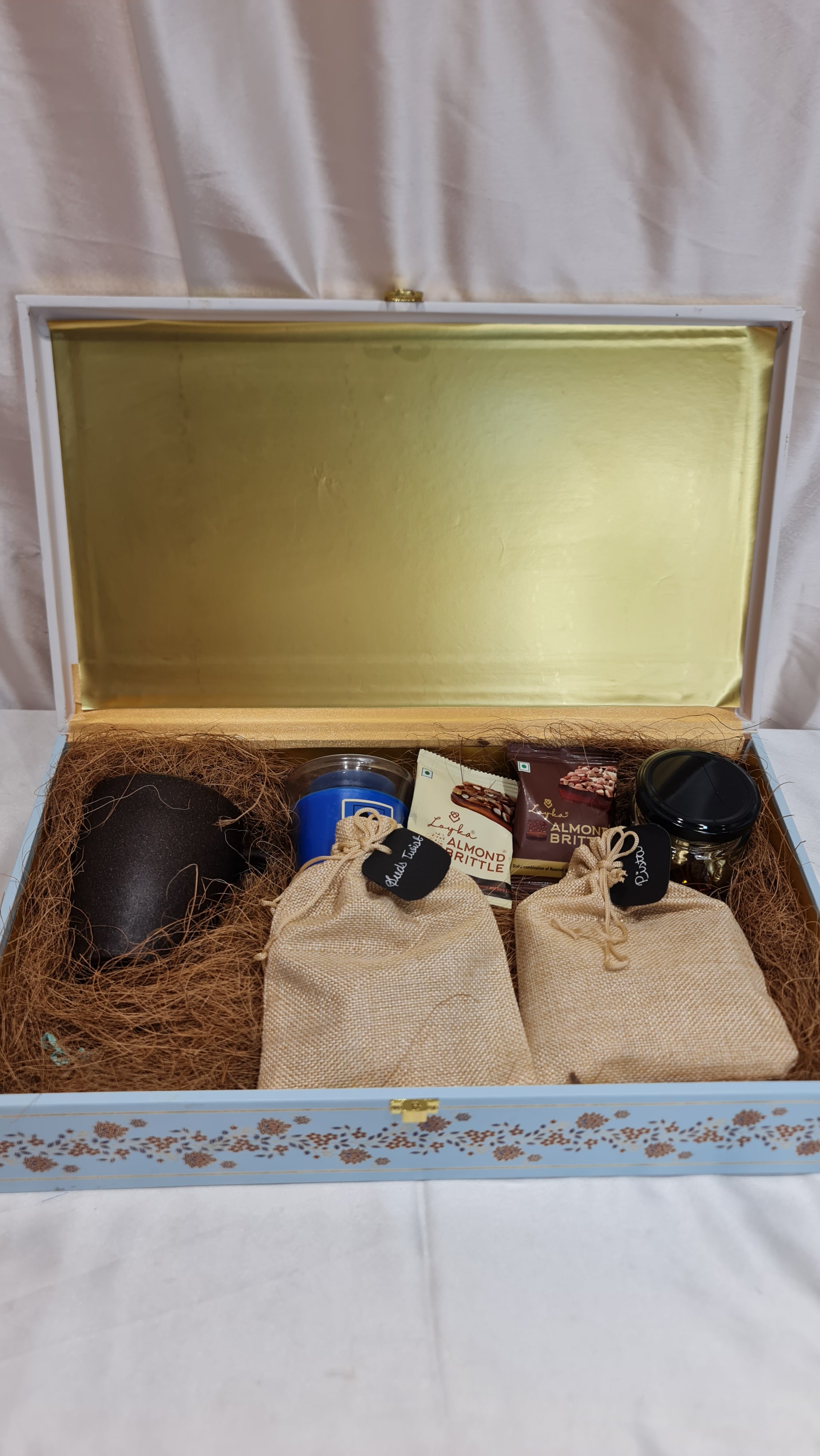 Premium Construction & Size: Made from durable MDF (Medium-Density Fiberboard) for sturdiness and longevity. Dimensions are ample (approx. 40 cm L x 23 cm W x 9 cm H), ideal for holding multiple gift items like bottles, gourmet treats, or apparel.