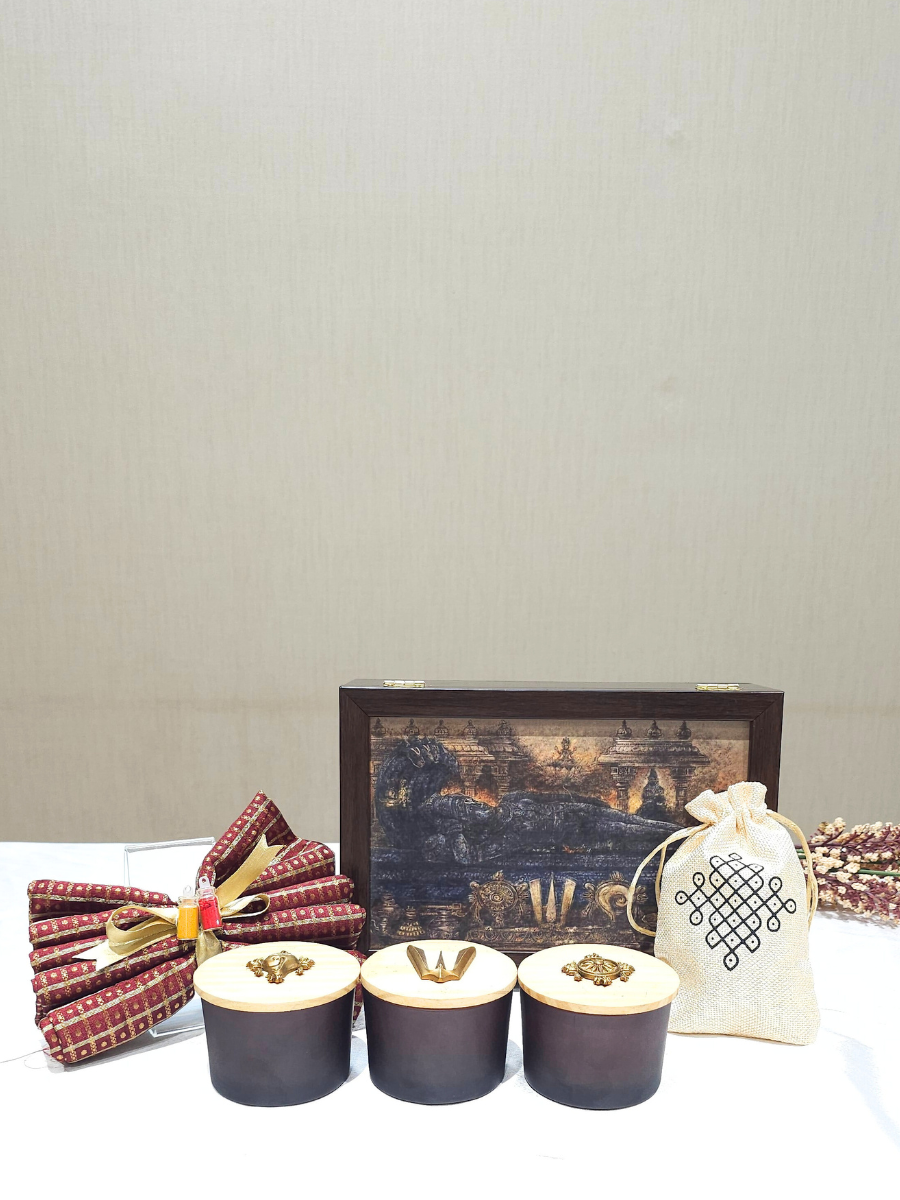 The Maha Vishnu imagery represents prosperity, protection, and divine blessings, making this gift box particularly auspicious for: Starting new ventures, Wedding blessings, Housewarming ceremonies, Religious celebrations, and Festival gifting.