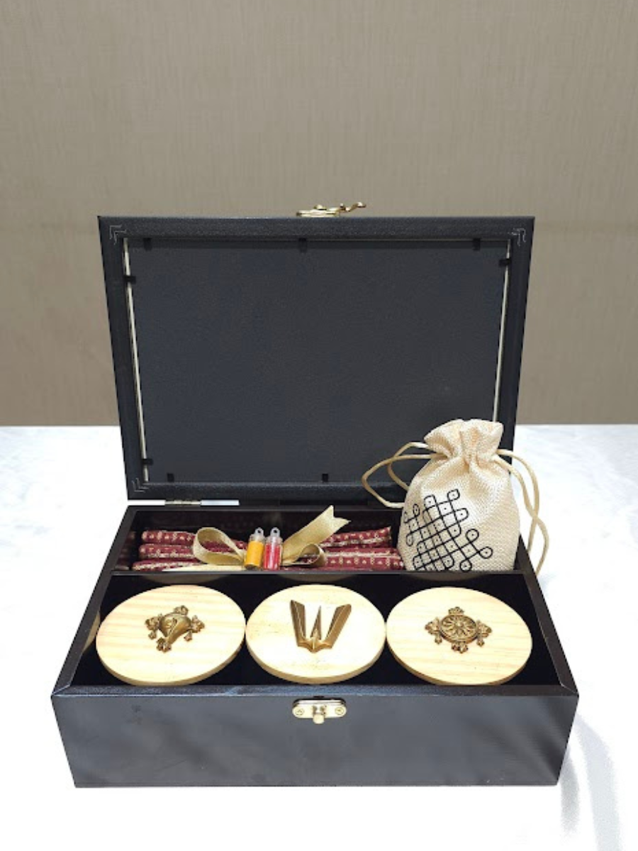 This ready-to-present gift box eliminates hours of preparation time. Simply present it to your honoured guests, and let the divine beauty and thoughtful curation speak for itself.