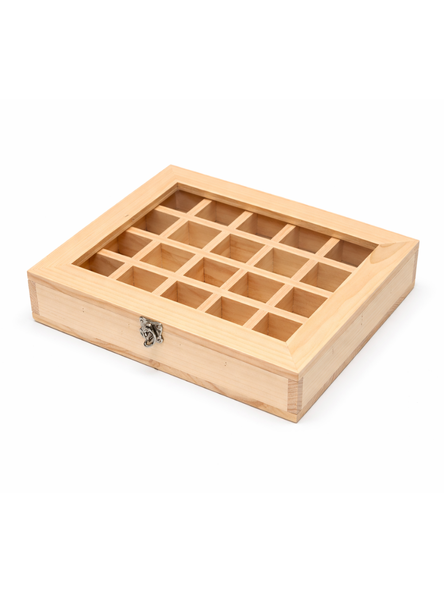 This display box is perfect for collectors and organisers who want to see and protect their items simultaneously. The clear lid eliminates guessing what's inside while preventing dust accumulation. Twenty compartments mean no more tangled necklaces, missing earrings, or mixed-up collections. The natural pine wood adds sophistication that plastic organisers can't match, making it beautiful enough to display openly. Whether you're organising daily jewellery, protecting valuable collectables, or managing craft supplies, this box keeps everything visible, accessible, and pristine. It's also an impressive gift for collectors or anyone who appreciates beautiful organisation.