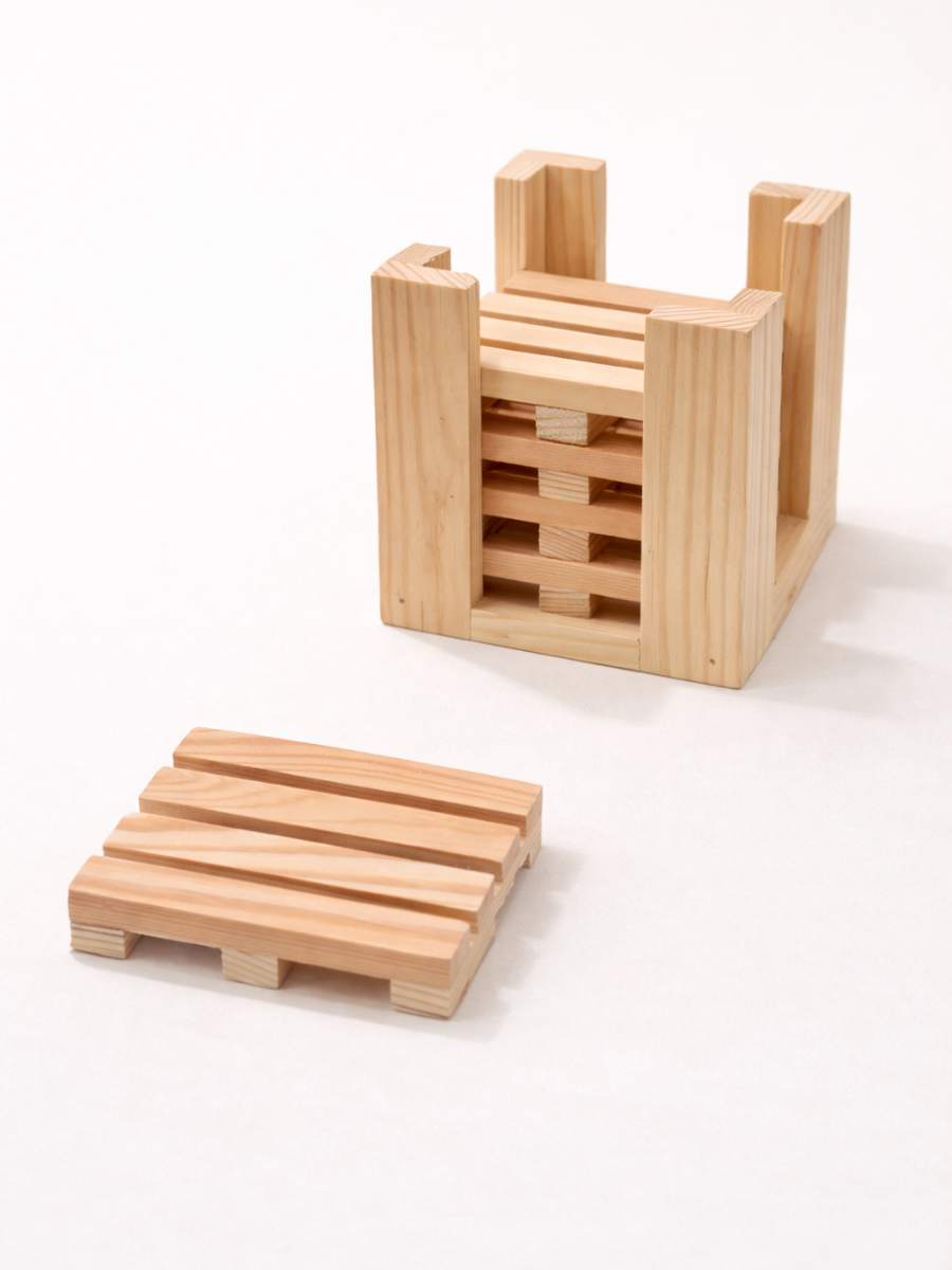 Rectangle Pine Wood Coaster Set with Holder