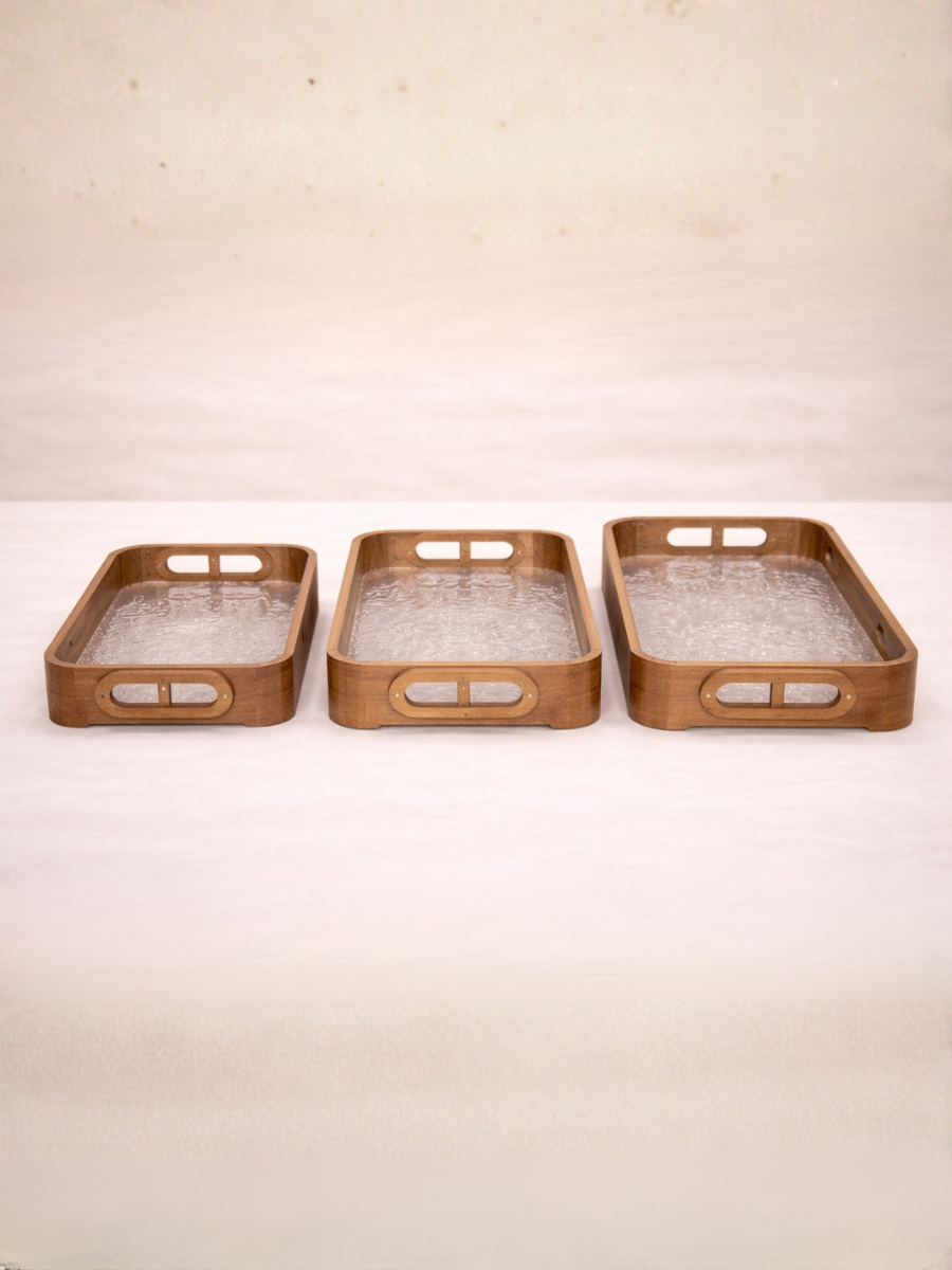 Most serving tray sets choose between looking good and being functional. This bamboo and crackle glass set does both — and does them beautifully. Walk into any home décor store and you will find dozens of plain wooden trays. What you will not find is a bamboo tray with a crackle glass insert that shimmers and catches light from every angle. This detail transforms an everyday tray into a conversation-starting décor element that guests will notice and comment on immediately.With food-grade lacquer coating and zero synthetic chemicals or toxins, these trays are safe for the whole family — including children. Whether you are serving snacks, presenting a charcuterie spread, or carrying breakfast in bed, you never have to worry about what is touching your food. The greatest challenge with gifting home items is not knowing the recipient's taste. This tray set solves that problem — its warm natural bamboo tones and neutral crackle glass base complement every interior style, from minimalist and modern to bohemian, farmhouse, and traditional Indian homes. It is the safe, impressive, universally loved gift.